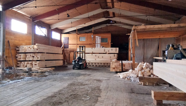 Изготовление основных конструктивных элементов готового брусового жилища на наших собственных производственных площадях.