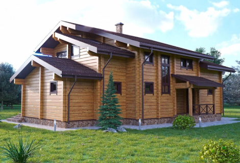 Лучшие проекты коттеджей из бруса от компании «Хаус-Строй». Большие, основательные и в то же время недорогие варианты домов.
